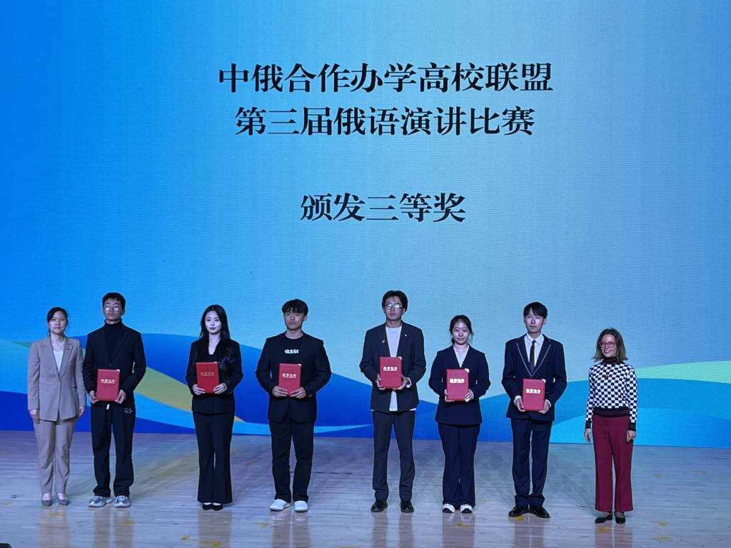 此次比赛是beat365体育官网中俄合作办学机构的学生首次参加的赛事,极具挑战性。beat365体育官网派出的4名选手分别是船海(中俄)1231班蔡荣捷、李可钦、胡耀东,电信(中俄)1231班孟当博。选手们克服层层困难,在比赛中能清晰表达中俄传统文化及抒发中俄友谊情感,以演讲主题鲜明、积极健康、表达完整、俄语发音准确流畅、展现时代精神风采等斩获了奖项。最终,胡耀东、孟当博获得低年级组三等奖,蔡荣捷、李可钦获得高年级组三等奖。